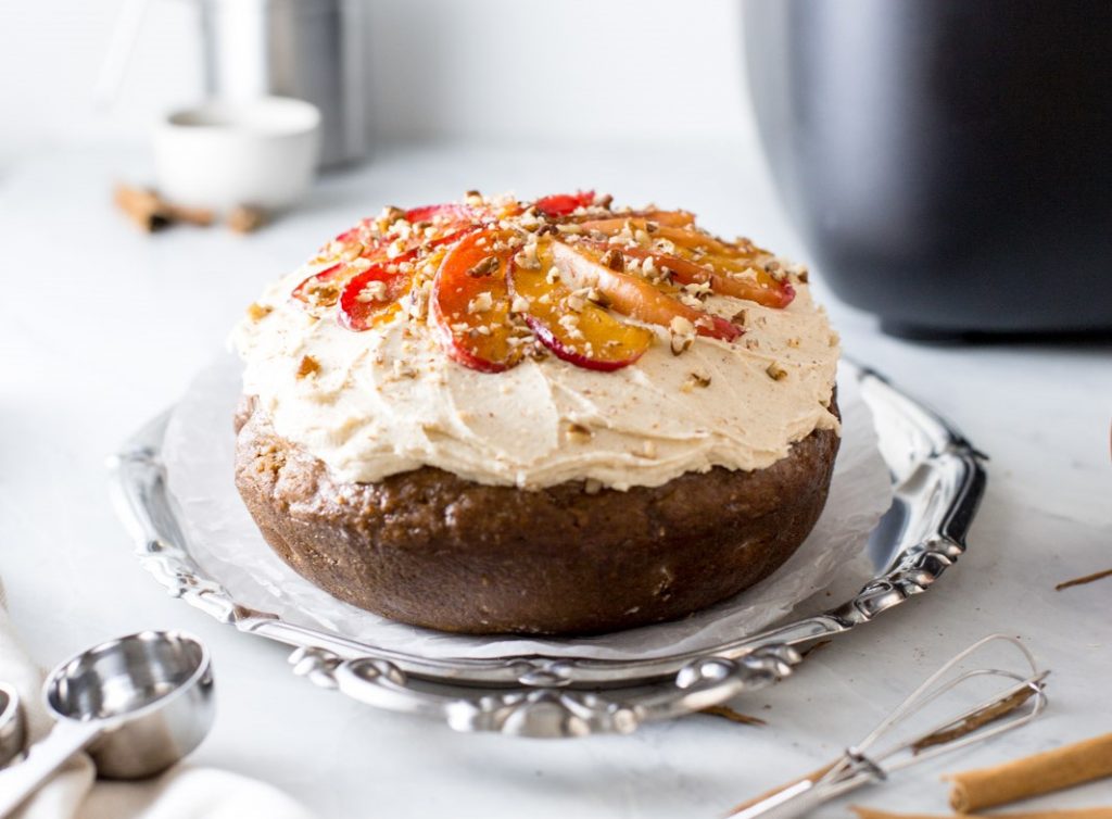 - Fold in apple pieces and pour mixture into breadpan. Smooth the top of your mixture.